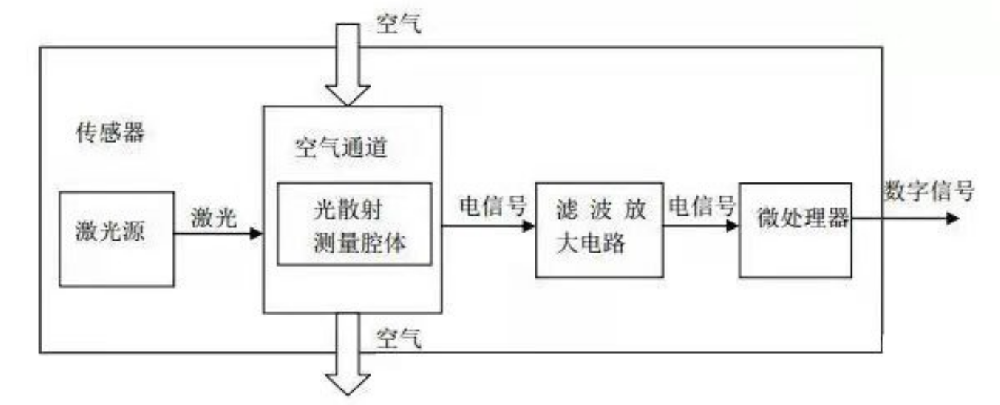 0755-86130168粉塵質量測量技術是采用激光散射原理,傳感器結構和電路相對復雜。其光源為激光二極管。采樣空氣通過風扇或泵推動,通過設計的氣路,進行檢測。當空氣中的細顆粒物進入激光束所在區域時,將使激光發生散射;散射光在空間360°都有輻射,在適當位置放置光電探測器用以接收散射光,然后經過光電探測器的光電效應產生電流信號,經運放電路放大及處理后,即可得到細顆粒物的強度。在轉換成相對應的數量和質量,并傳輸到控制平臺。原理如下: